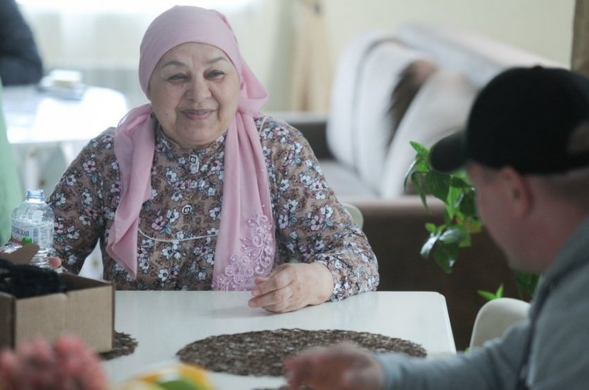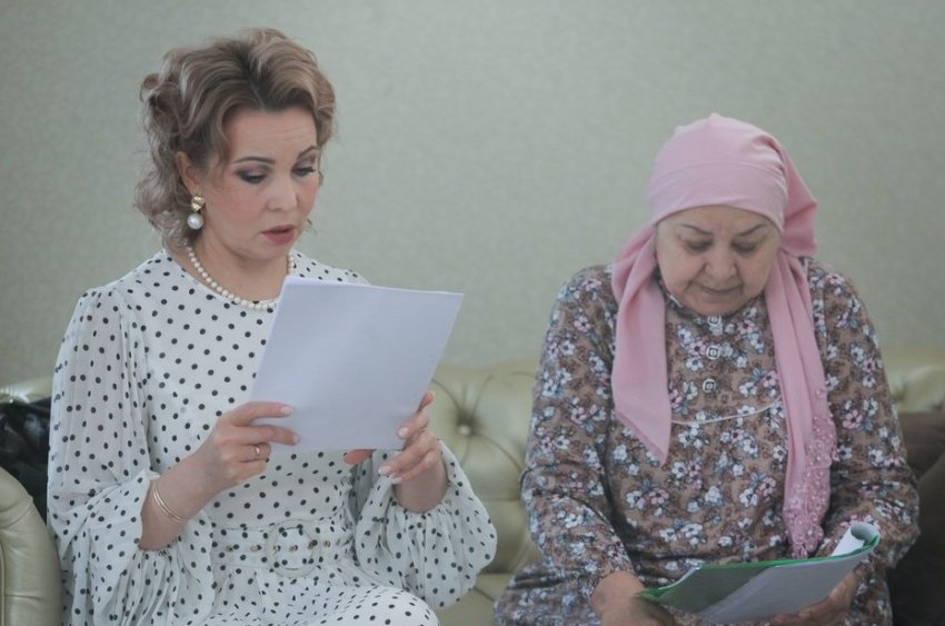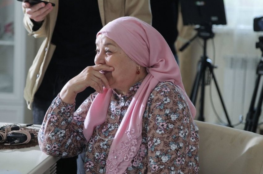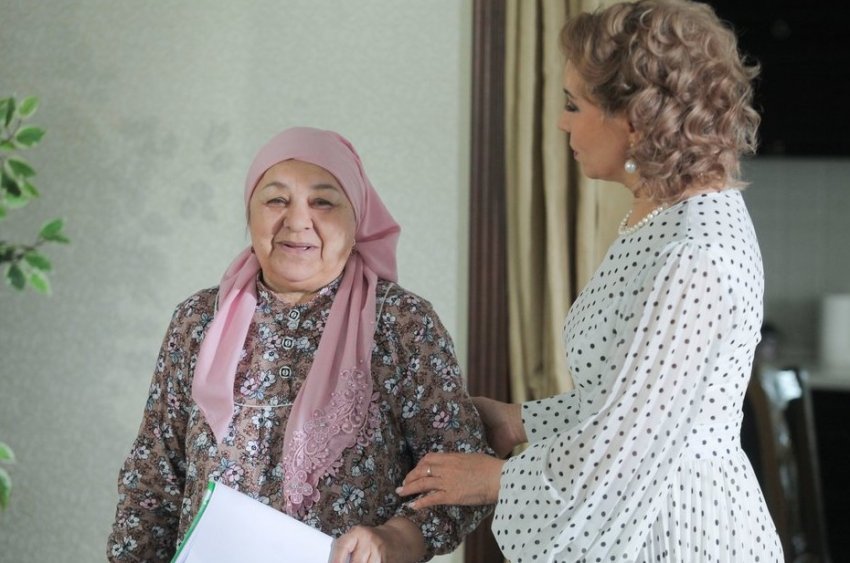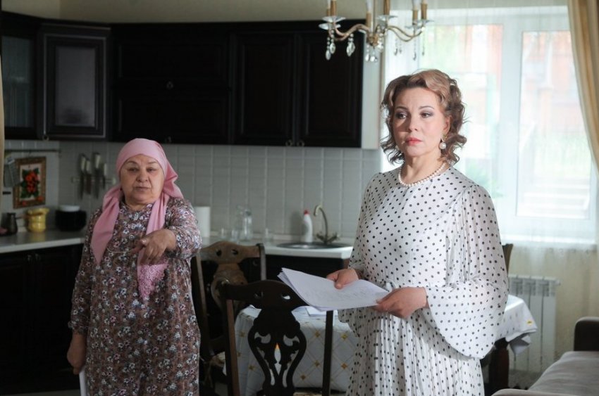 Бабушку играет актриса Камаловского театра Фирая Акберова. Пока она вчитывается за кухонным столом в текст эпизода, в шутку замечаем, что она сыграла столько телеролей, что может считаться ветераном ТВ.