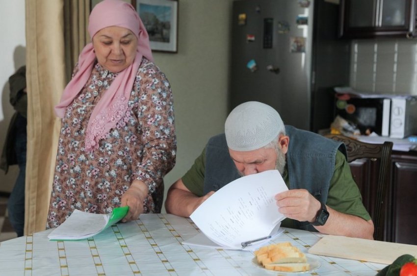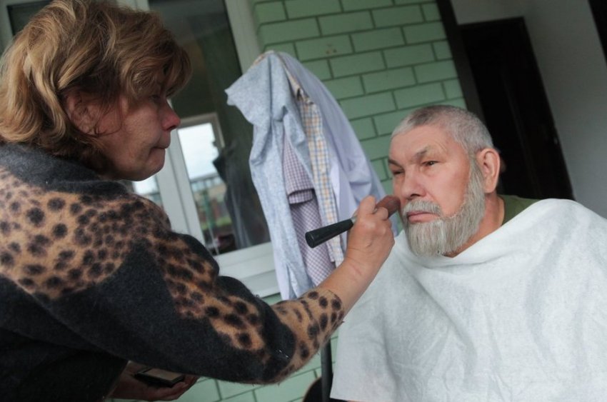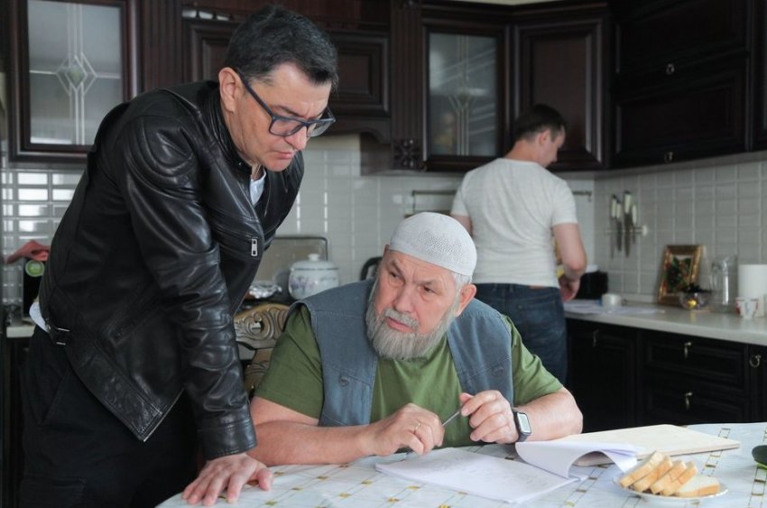 Это точно касается роли Гамиля Асхадуллы. Руководитель театра «Мунча ташы» сходу отмечает, что роль у него драматическая. На площадке он недавно — его герой не сразу оказывается в доме. Благодаря окладистой седой бороде один из самых известных комиков Татарстана превращается в степенного деда, которого явно не устраивает происходящее в семье.