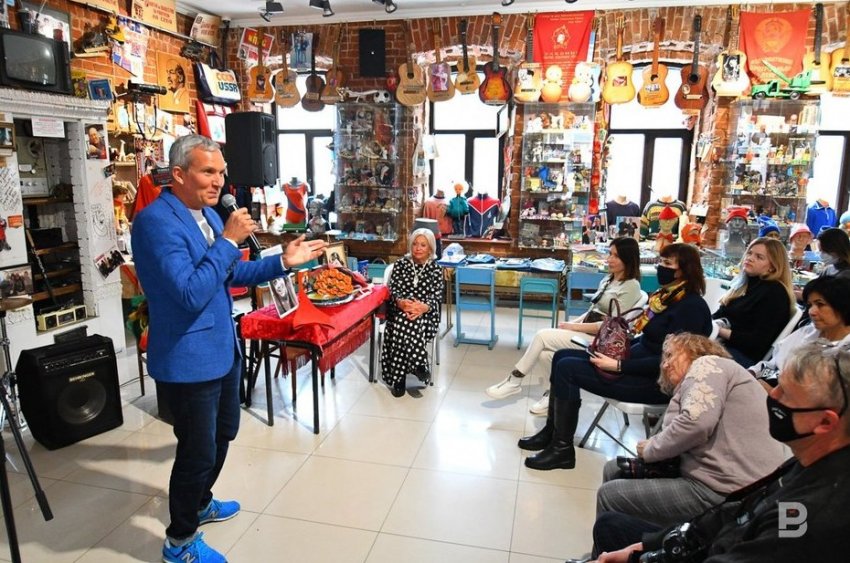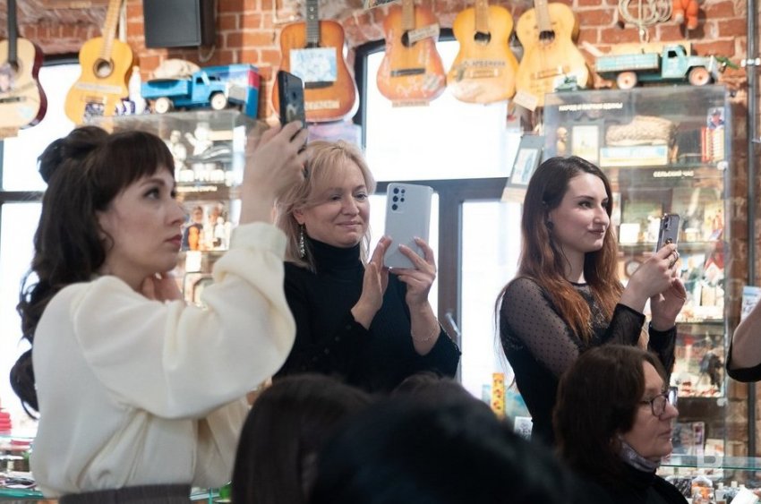 В стенах Музея соцбыта песни Караченцова тоже вчера звучали. «Кленовый лист» и «Страдания» из кинофильма «Белые росы» в исполнении казанских музыкантов заставляли слушателей тепло улыбаться. Кстати, гостей пришло немного — всего человек 15. Но были среди присутствующих представители разных поколений: и седовласые господа, и совсем юные ребята с горящими глазами.