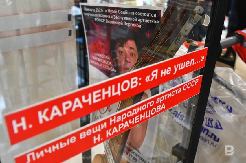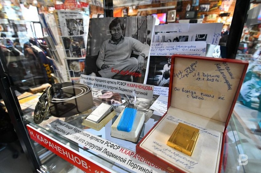 19 марта при поддержке Управления культуры Исполкома Казани в казанском Музее социалистического быта открылась постоянная экспозиция, посвященная актеру Николаю Караченцову. На церемонии открытия присутствовала вдова артиста — заслуженная артистка России Людмила Поргина. Семья Николая Петровича решила передать в дар казанскому музею фотографии из семейного архива, первую гитару Караченцова, шляпу, в которой снимался актер в фильме «Человек с бульвара Капуцинов», и другие семейные реликвии. Подробности — в материале «Реального времени».
