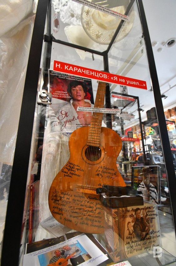 Казанский музей получил в подарок от близких Караченцова первую шестиструнную гитару артиста, его теннисные ракетки, спортивную форму и стопку семейных фотографий.
