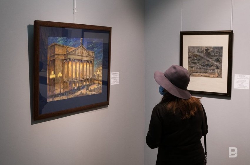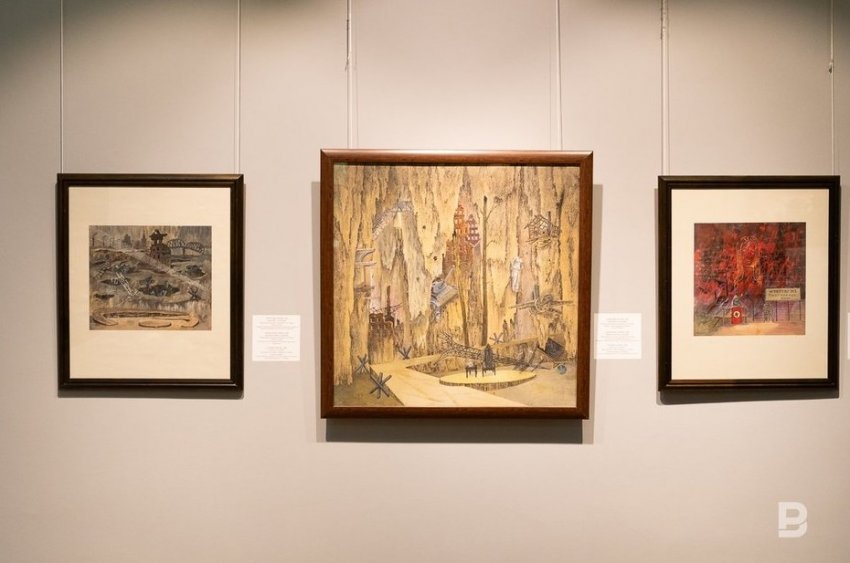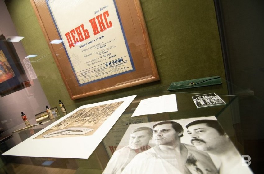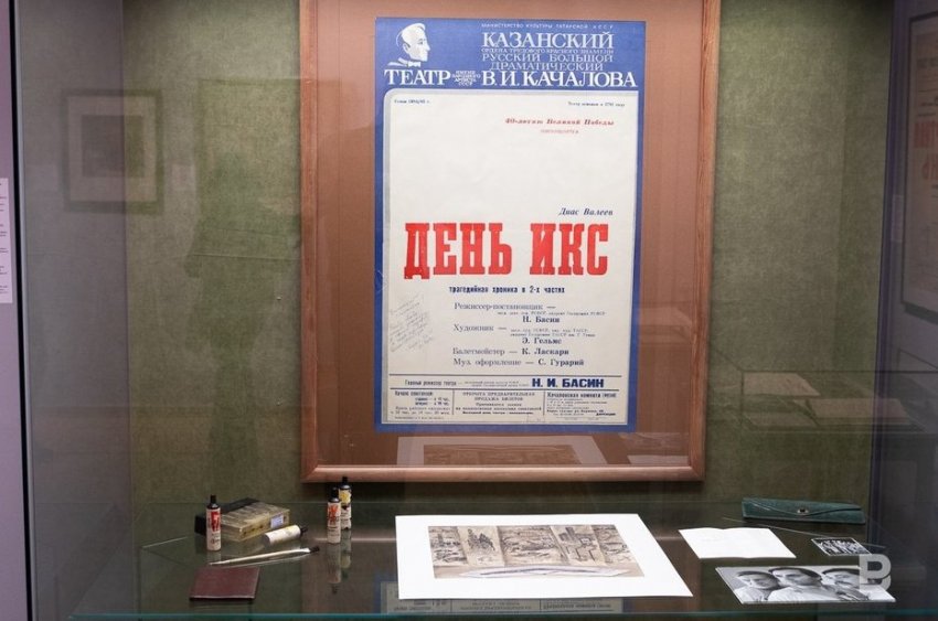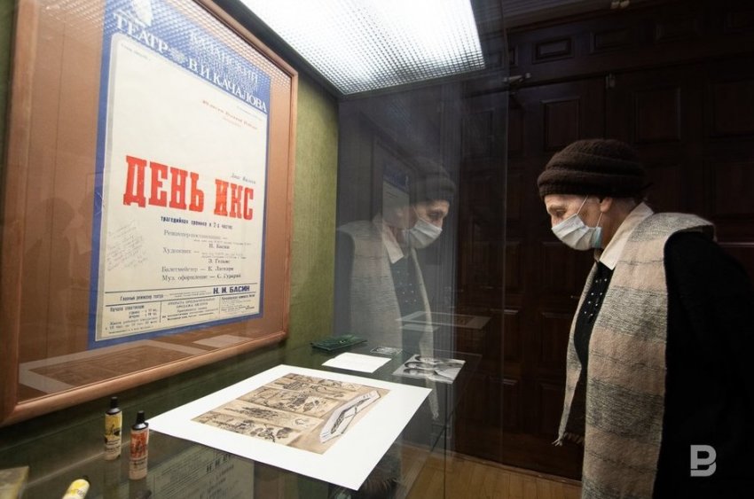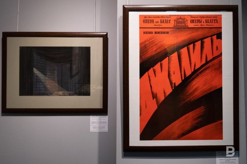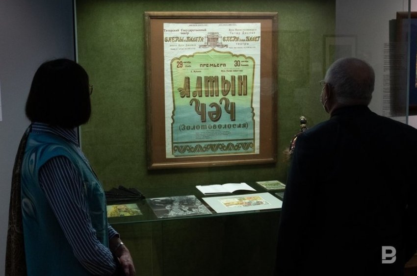 О многом говорят театральные афиши и программки, собранные на витринах. Основоположник татарской оперы Назиб Жиганов пригласил своего друга Мусу Джалиля создать либретто для опер «Алтынчеч», первого национального произведения со сказочно-эпическим сюжетом, и «Ильдар», опять же одной из первых опер о Великой Отечественной войне. Сохранились афиши этих постановок. Можно увидеть эскизы декораций к этим произведениям. Их выполнили художники Петр Сперанский и Любовь Сперанская-Штейн: на зарисовках можно увидеть дома за колючей поволокой, деревенскую улицу в багровых тонах, словно готовящуюся к страшной буре, или шатер злодея-хана, зарившегося на красавицу Алтынчеч.