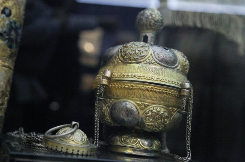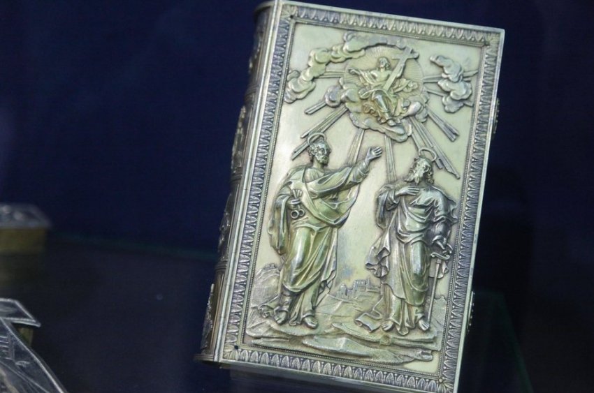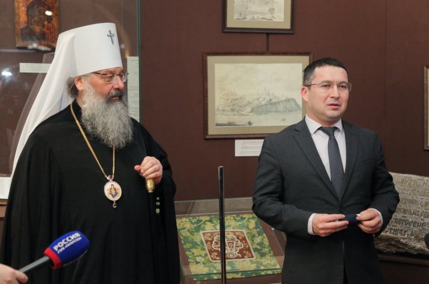 Фото: Ринат Назметдинов Сегодня в Национальном музее Татарстана открылась выставка «Православная ризница». На ней представлены экспонаты, рассказывающие об истории Казанской епархии. Большинство из них демонстрируются впервые. Центральное место в «Православной ризнице» занимает серебряный оклад