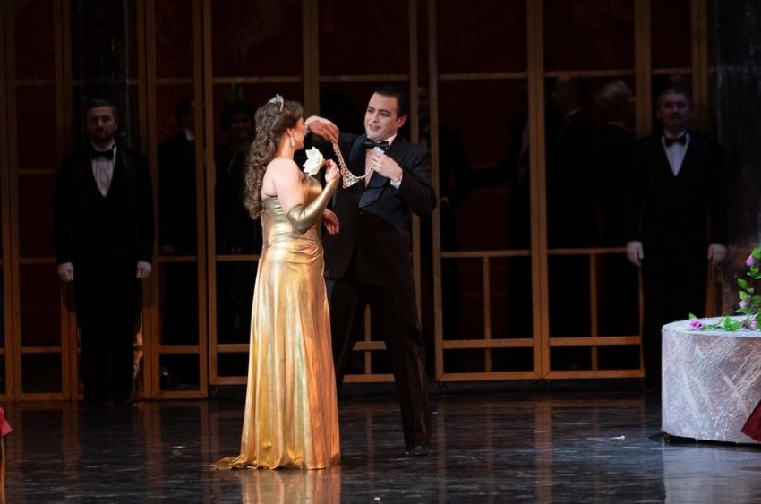 — Мне нравится эта постановка, здесь есть простота и элегантность. Кто-то, конечно, может осуждать поведение Альфреда, который на балу у Флоры в порыве ревности слишком яростно треплет и швыряет Травиату. Но его поведение оправдано — он юн и ревнив. Он же не плохой человек. В целом, мне очень нравится, и я сам участвовал, в постановке Нияза Даутова, великого режиссера, личности, которая рождается раз в сто лет, — поделился артист.
