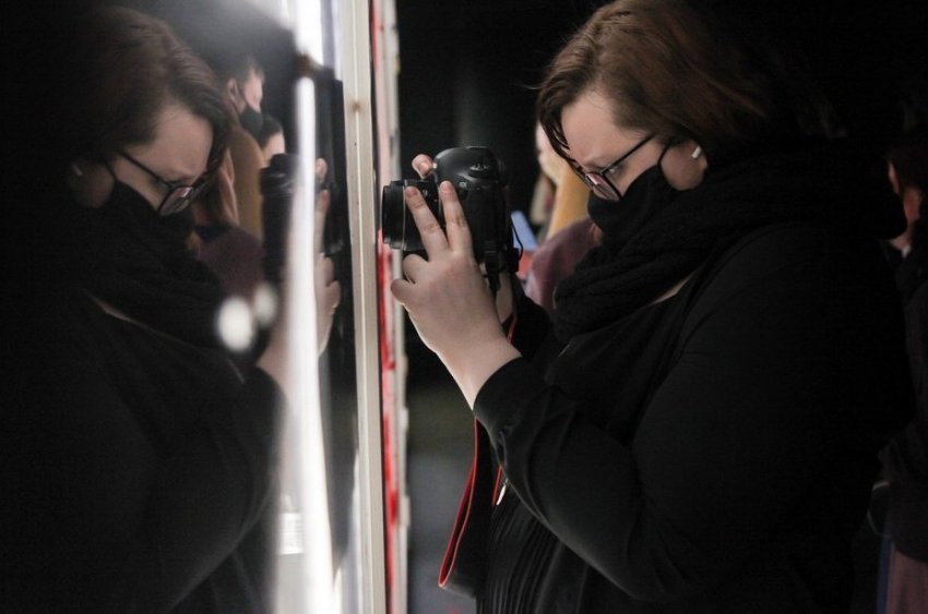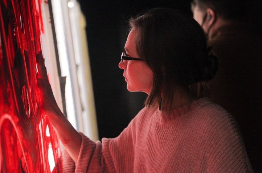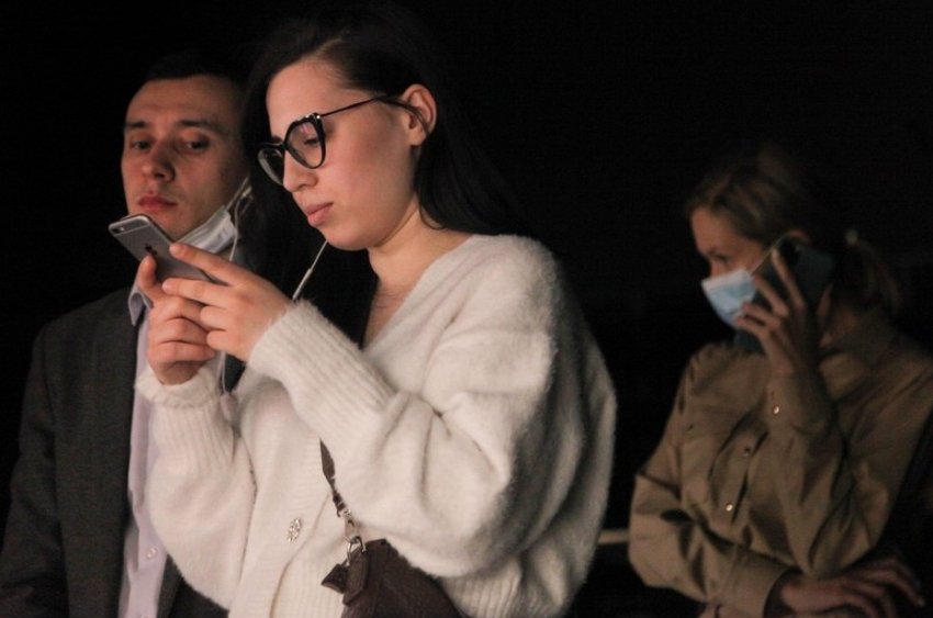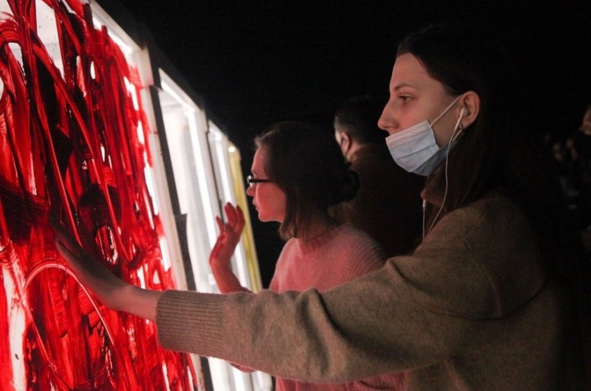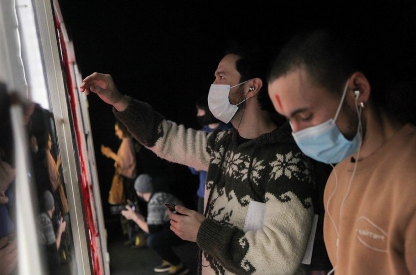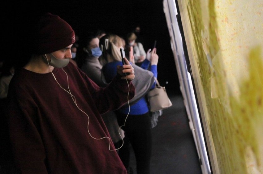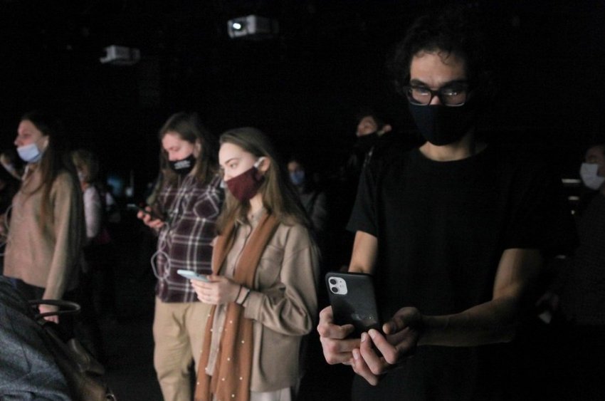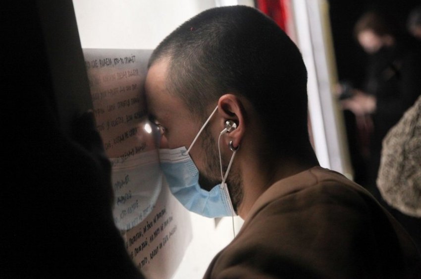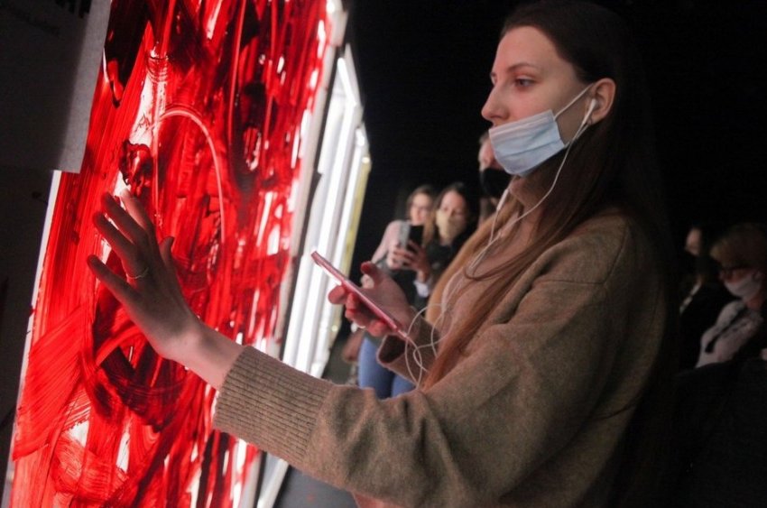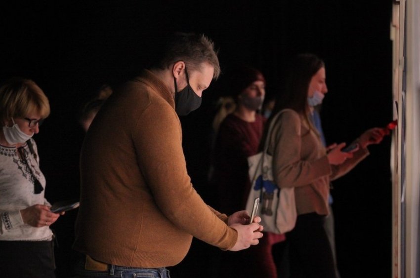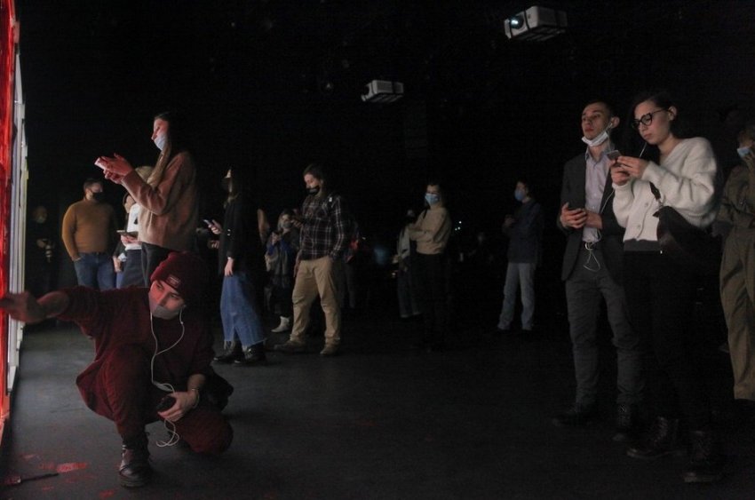 Перед спектаклем зрителям раздают наушники. Второй этап — это прослушивание аудио. Чтобы его найти, надо отсканировать qr-коды. Неизвестно, насколько они производят впечатление вне темного пространства бокса.