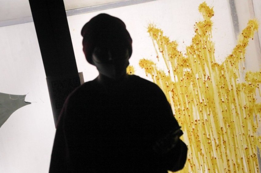 Четвертая — ведет действо. Она просит случайного зрителя подойти, взять кисть и написать ответы на вопросы: «Били ли вас в детстве?», «У вас есть ребенок?», «Планировали вы беременность?» Постепенно вся стеклянная стенка покрывается краской. Звучат полевые записи.