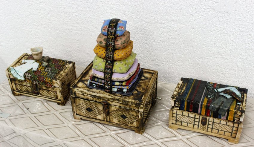 Свою дипломную работу я выполнила в этностиле — башкирские музыкальные шкатулки в виде сундуков и подушек на нем. Этой работой я хотела сказать миру о том, насколько важно чтить традиции прошлого, на которых держится наш мир.
