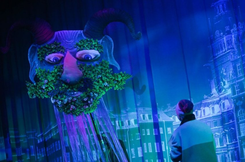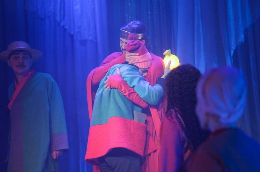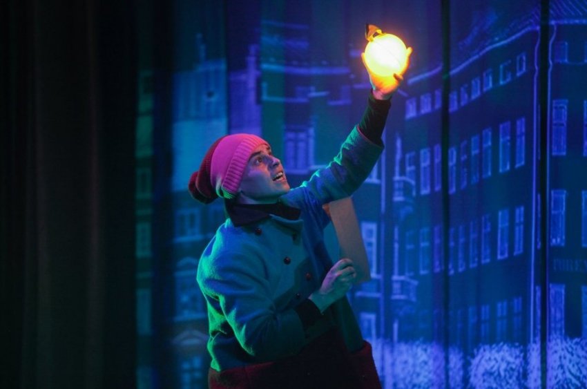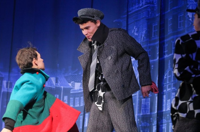 К темпу спектакля вообще вопросов нет — все в нем развивается постепенно, как раз настолько быстро, чтобы осознать все радости, горести и решения главного героя. Вот он, сирота Боссе, на улице, в коротком пальтишке и нелепой шапке, его обижают мальчишки, вот за него заступается хозяйка магазина, а вот появляется джинн, который уносит его в страну, где он встречается со своим отцом Королем (Ильнар Низамиев). И вот уже Боссе — это принц Мио, у него футболка с принтом отца, а его друг в том мире Бенка — это верный Юм-Юм, сын садовника. А мальчишки, которые его обижали, теперь пастухи, которые дарят ему флейту.