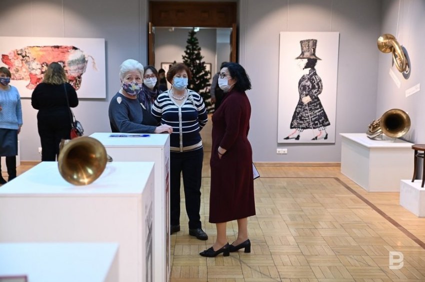 В Национальной галерее «Хазинэ» открылась выставка «ПримусПушкинПатефон» московских художников — Натэллы Войскунской, дизайнера Аллы Бединой и офортистки Светланы Ланшаковой. Даже сами авторы затрудняются ответить, откуда родилось название, однако цель своей работы они обозначили однозначно — создать новогоднее настроение, напомнить взрослым о детстве и просто «поиграть в песочнице». Идею же проекта подсказали елочные игрушки советских времен. С экспозицией ознакомилась корреспондент «Реального времени».