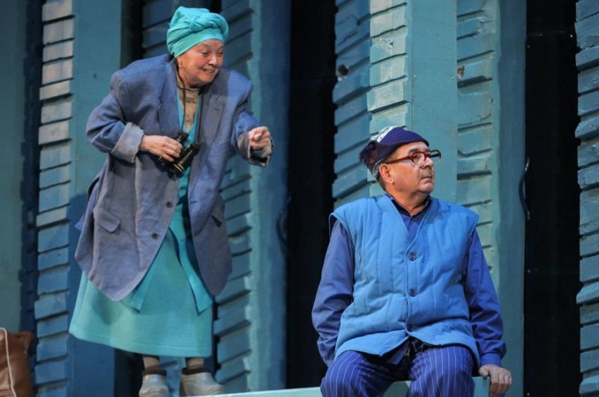 В какой-то момент спектакль, начавшийся все-таки с четких мизансцен и запоминающихся реплик, скатывается в ту самую суматоху. Чем дальше, тем больше грохота, шума и криков в пьесе — и вот уже жена Рахимзяна Марьям (Гульчачак Хафизова) из безвольной жены алкоголика превращается в фурию с пистолетом.