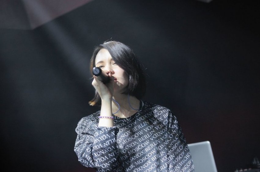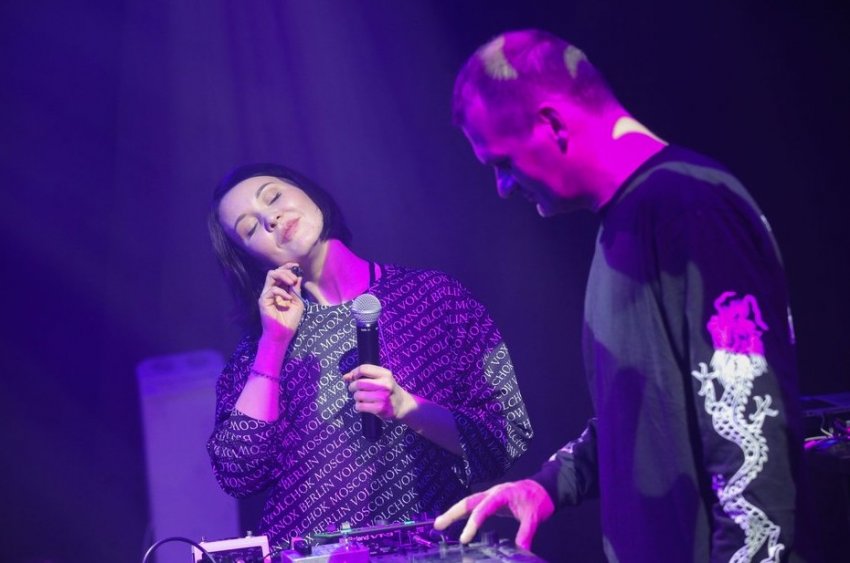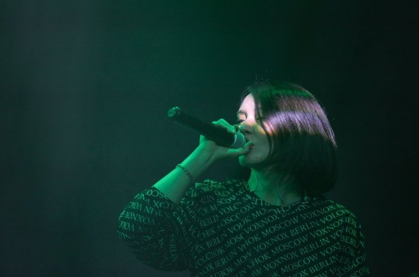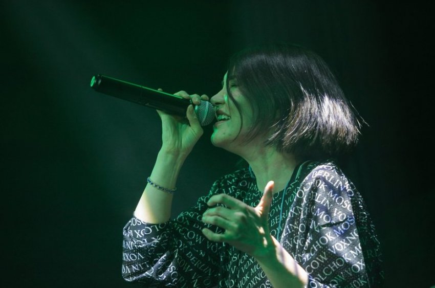 Гайсина говорила между песнями: «Рәхмәт», ее голос, пропущенный через реверберацию и дилеи, множился, что веселило и ее коллегу по группе.