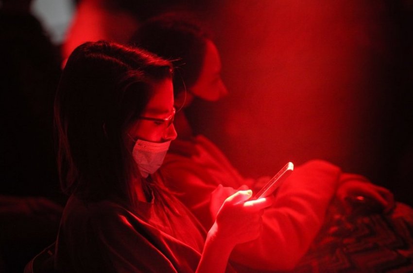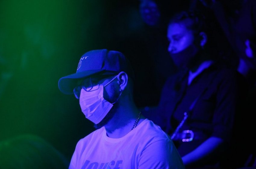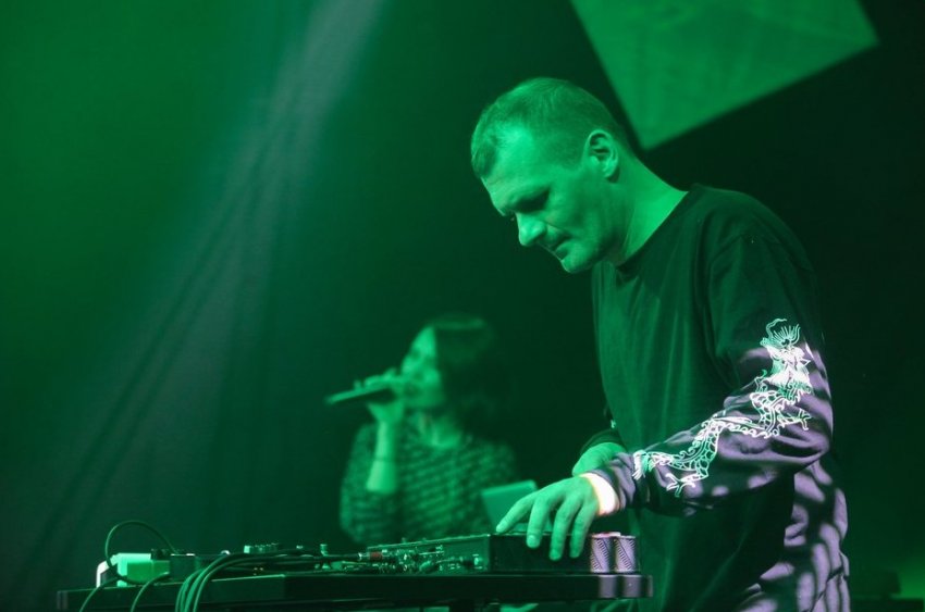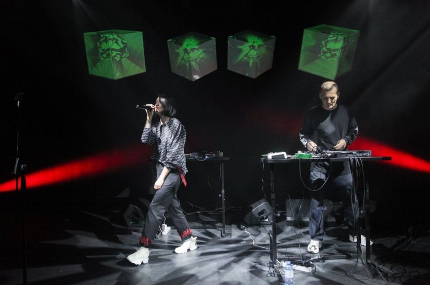 Через полчаса в зал вышли Барамия и Гайсина — и зазвучал первый, среднетемповый трек «Онытырмын». Те, кто слушал «АИГЕЛ» ранее, оценят и новую пластинку, где сочетаются и медленные, тягучие, мрачные биты, ориентальные басы и грувовые речитативы в духе певицы M.I.A. Надо отметить, что дуэт собрал лайв буквально на коленке в течение трех дней в казанской квартире Гайсиной (сюда она переехала в начале осени, вместо Москвы, куда изначально планировала перебраться с дочерью, но план изменило решение тамошних школ перейти на дистанционное обучение). Если разогрев звучал достаточно скромно, то здесь басы разогнались до ощущения дискотеки, хотя зрители и оставались на местах, в масках, погруженные в музыку.