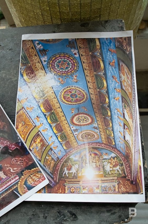 В целях экономии средств в некоторых помещениях комплекса вместо росписи на стены наносятся готовые распечатанные на холсте принты, выглядящие как фрески. Такая техника позволяет работать довольно быстро: зал Шивы Ханов планирует открыть для посетителей уже через месяц.