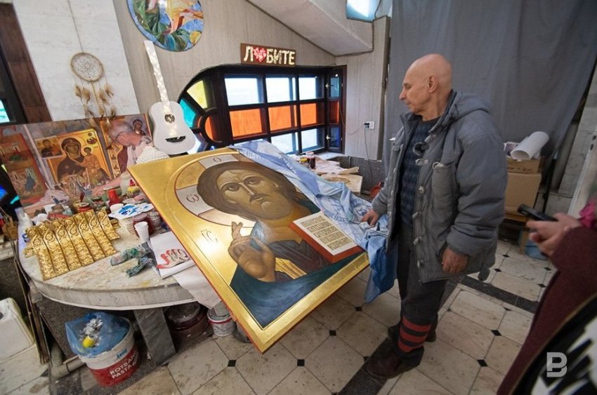 — Я все делаю быстро. Еще 3 месяца назад не было этого сооружения, — показывает на стены помещения художник.