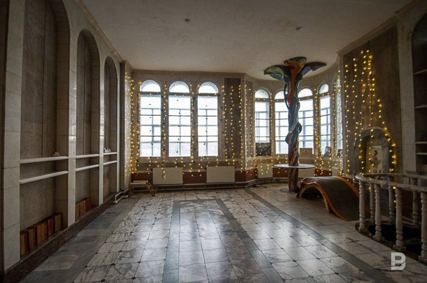 Помещение имеет прикладной характер, в нем можно будет заниматься йогой, которую практикует Ильгиз Ханов. Для этого предусмотрены специальные раздевалки, из которых по лестнице можно будет спуститься в зал.