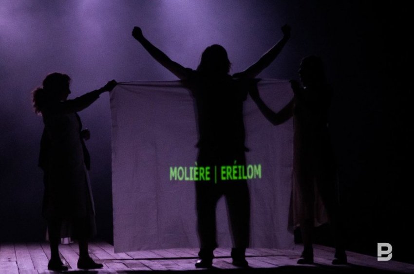 Его «Мольер», которого вчера увидела казанская публика, так же отличается хорошей литературной основой. Режиссер деликатно сочетает в своем спектакле пьесу Булгакова о великом французском комедиографе, фрагменты из мольеровских пьес и написанные им небольшие вставки в текст.
