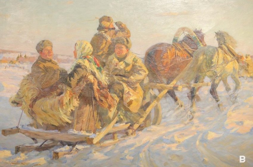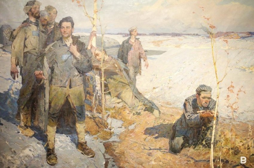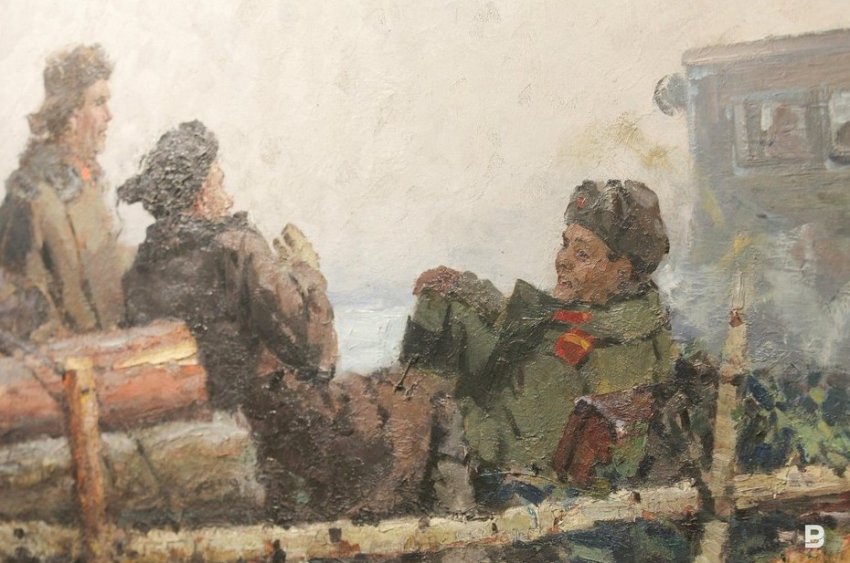 Еще четыре зала галереи заняла другая тематическая выставка из фондов музея — «И снова май…». Художники запечатлели моменты короткой передышки между боями, периоды затишья, когда солдаты отдыхали, писали письма родным на родину. Великая Победа, возвращение с поля боя, жизнь после войны — все эти сюжеты нашли свое отражение в полотнах художников.