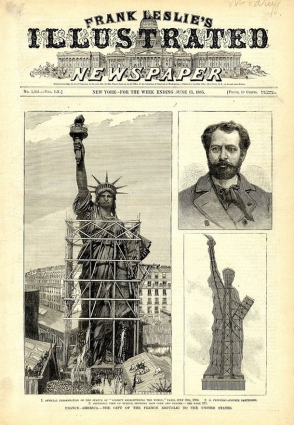 17 июня 1885 года статуя Свободы прибыла в США на борту французского парохода Isere. Она была задумана как подарок к столетнему юбилею Декларации независимости в 1876 году. Статуя была сделана из меди и стали, ее высота без пьедестала — 46 метров.