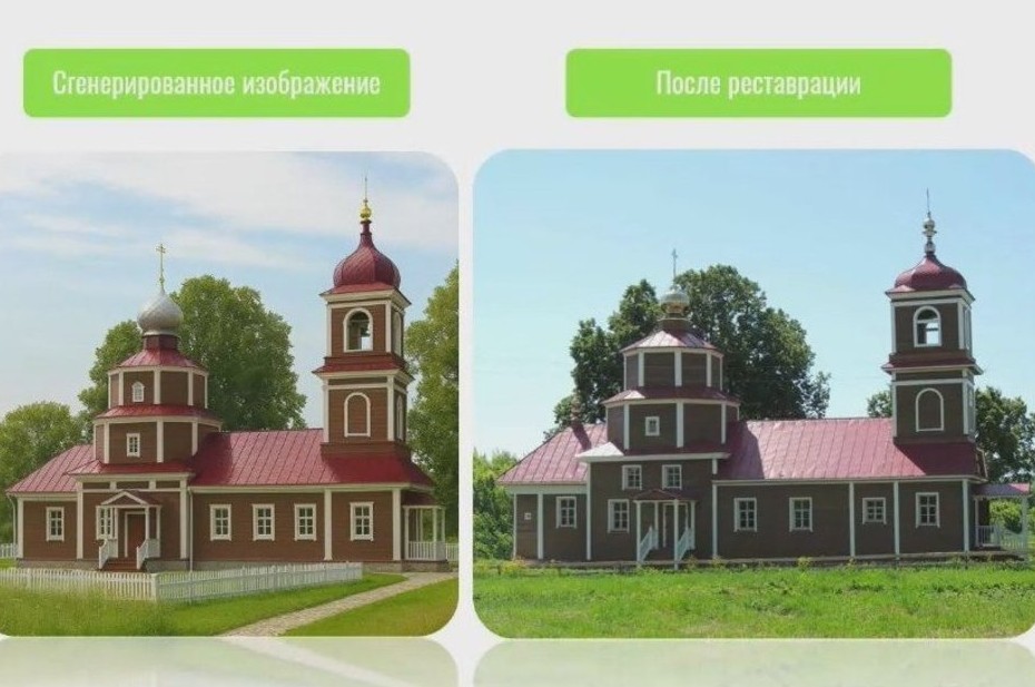 Начвин привел пример, как «Госпромт» поработал с Михаило-Архангельской церковью (1757, 1856, 1912 годы постройки): получил фотографии, изучил исторические данные, а в результате предоставил детальный анализ. И визуализировал результат, который Начвин предложил сравнить с тем, что на самом деле сделали реставраторы. Картинки перед конференцией подготовили с Гущиным.