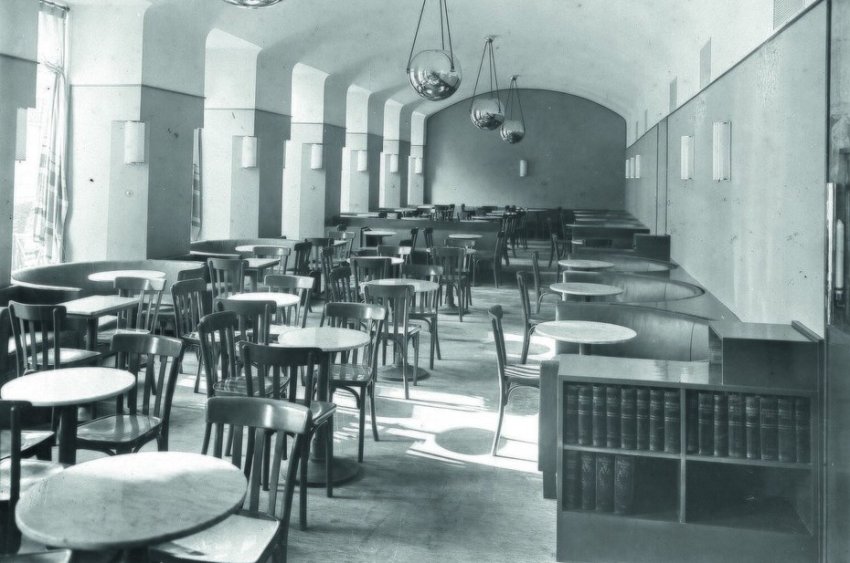 Кстати, Адольф Лоос не только критиковал, но и показывал как надо. В 1899 году в Вене открылось кафе «Музеум», интерьер которого оформил Лоос в подчеркнуто сдержанном стиле. На тот момент это считалось революционным. Архитектор вдохновлялся кофейнями бидермейерского периода в европейском искусстве и дизайне (с 1815 по 1848 год). В основном он ориентировался на домашний уют, практичность и семейные ценности среднего класса. Лоос сделал гладкие стены, латунные багеты, мраморные столы на деревянных ножках. Поставил стулья из гнутой древесины и плетеные кресла. Повесил патроны с лампочками на проводах без абажуров. Трубы служили одновременно газовыми магистралями и вешалками для одежды. Пространство расширялось с помощью зеркал. А в Gibson-зале висели репродукции произведений американского художника Чарльза Дана Гибсона (1867—1944). Кафе «Музеум» стало образцом не только для кофейных интерьеров, но и для всей современной обстановки следующих эпох.