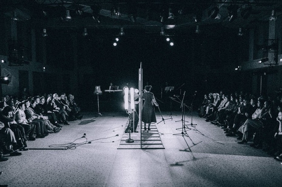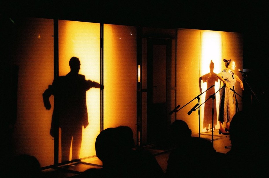 Со стороны Хасана Туфана — разнообразные торшеры, потому что мужчины любят глазами, звучит из зала. На стороне Булатовой — микрофоны, потому женщины любят ушами. Актеры переставляют эти предметы, играя звуком и светом, танцуют — напряженную хореографию ставил Нурбек Батулла, меняют голоса — Мухаматгалиев в конце превращается в своего героя. Они читают стихи, некоторые из них Миннуллина искусно стилизовала под Булатову. На озвучке, кстати, сидит поэт Айрат Бик-Булатов, и люди в наушниках признаются, что лучше синхрона не слышали.