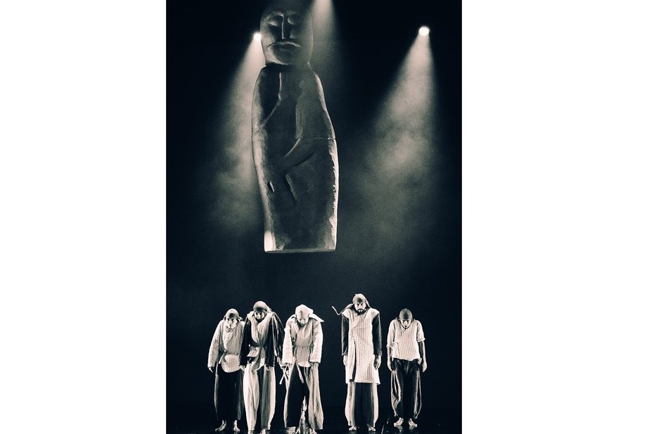 За несколько репетиционных сессий спектакль собрали, а Ислам Валеев, работая с танцорами, написал музыку — с гулкими бочками, кислотным басом и, кажется, сэмплами камней. Танцоры то бесконечно бегут в сторону балбалов, то оказываются под их воздействием, словно они заберут их на небеса, как инопланетяне. А потом герои превращаются в собак, охраняющих территорию. Играют «су-е-фа» и выбирают в жертву. Закономерно, что все кровопролития заканчиваются дискотекой.