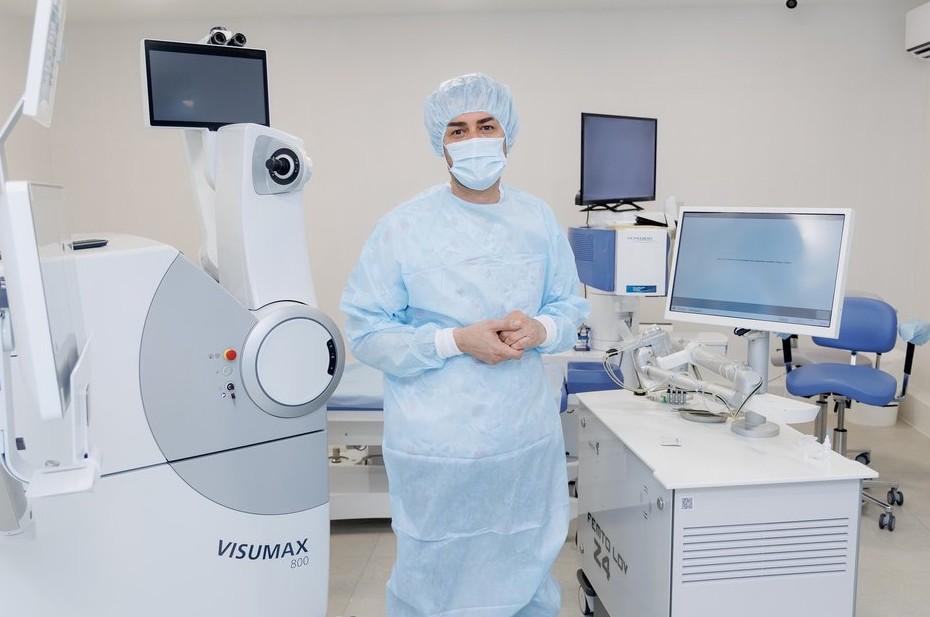 Сегодня мы проводим операции по восстановлению остроты зрения на двух современных аппаратах. Это швейцарский высокоточный комплекс Femto LDV Z8. Здесь выполняются операции по технологии CLEAR. Второй — немецкий аппарат VisuMax 800, на котором проводятся операции по технологии SMILE Pro.