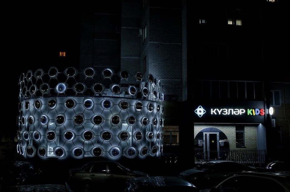Фасад здания украшен яркими светящимися «глазами» из серебристого металла, что увлекает малышей. Этот арт-объект мы создавали совместно с художниками и архитекторами города Казани, и он стал символичным подарком городу, его жителям и гостям. Арт-объект, кстати, назвали «Кузгэ куз» (в переводе с татарского — глаза в глаза). Наверняка и родители, и дети запомнят эти светящиеся глазки надолго и с удовольствием будут возвращаться. Внутри самого отделения маленькие пациенты чувствуют себя как в большом игровом зале: на стенах изображены любимые герои книжек, в коридорах детские игровые зоны. Прием малышей ведут опытные специалисты, которые не только разбираются в офтальмологии, но и понимают психологию детей. На первом этаже клиники расположен салон «ШБ оптика», где после обследования можно приобрести очки или контактные линзы.
