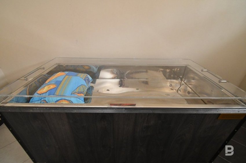 — Иногда в день у нас уходят сразу три пациента, — пояснила Хисамова. — Вот в эту холодильную витрину с прозрачным верхом мы укладываем наших деток. Мама и папа могут провести здесь последние часы со своим ребенком, просто посидеть рядом.