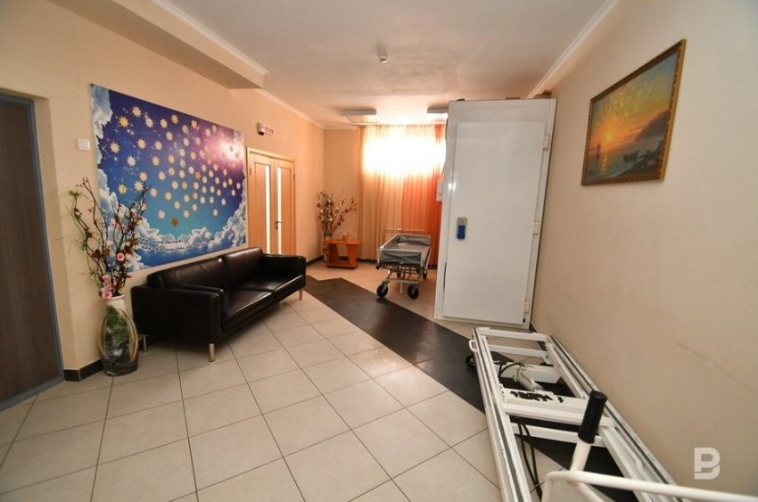 Так называемая прощальная комната — последняя возможность побыть рядом с близким перед тем, как расстаться навсегда. Здесь установлены холодильные камеры. Оборудование позволяет хранить тела умерших в оптимальных температурных условиях.