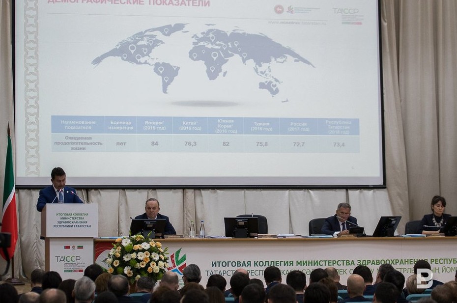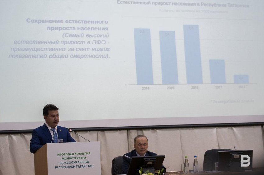 Отметив «незначительный» показатель прироста населения — плюс 1 600 человек, — достигнутый, увы, не повышением рождаемости, а снижением смертности, министр здравоохранения перечислил районы, где показатели смертности в 2018 году зашкаливали: Тетюшский — 19,6 на тысячу населения, Верхнеуслонский — 18 на 1000, Дрожжановский — 17,8, Апастовский — 17,7 при том что средний показатель по республике – 11,5 на 1000.