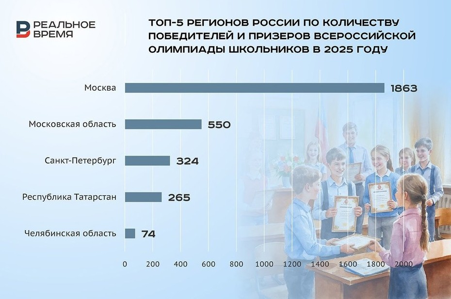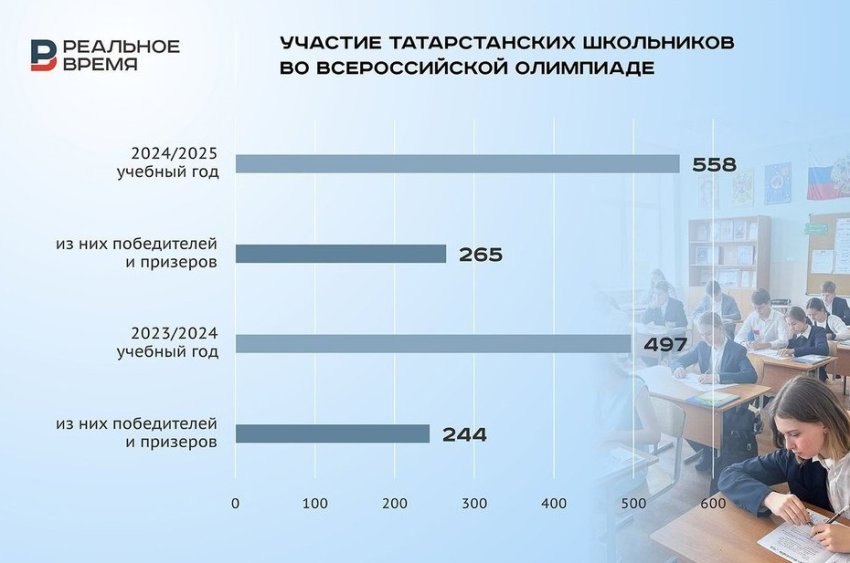 — Количество школьников из Татарстана, приглашенных на заключительный этап олимпиады, ежегодно увеличивается, оно выросло с 287 в 2017/2018 учебном году до 558 в 2024/2025 учебном году. Республика регулярно занимает лидирующие позиции в олимпиадном движении.