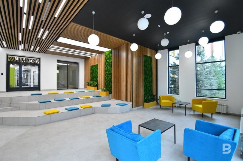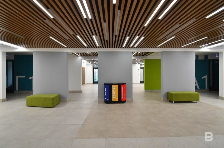 — Когда мы работали над этим проектом, перед нами стояло несколько задач. Первая задача была радикально изменить внешний облик, вы видите, что фасадные решения делают объект неузнаваемым. Это было важно для учащихся, педагогов и родителей, чтобы барьер попадания обратно в школу, где они пережили такую трагедию, было легче преодолеть. Следующая задача состояла в том, чтобы изменить школу еще и изнутри. Эту часть работы мы проделали вместе с педагогическим коллективом, вместе с ними мы полностью перепридумали зонирование, — рассказала помощник президента Наталия Фишман-Бекмамбетова, под чьим руководством шла реализация проекта.