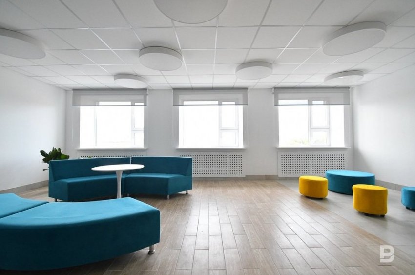 В реконструированной гимназии даже классы получились нестандартными. В них не только современное оборудование, интерактивные доски, аппараты для обеззараживания воздуха, но и нестандартная мебель. Вместо парт — небольшие столы, которые можно сдвигать и раздвигать, эргономичные стулья. Наталия Фишман рассказала, что одной из самых сложных задач было найти в такие короткие сроки такие большие объемы мебели, оборудования, материалов. Один предприниматель из Иваново даже отказался от своего заказа в пользу казанской гимназии, когда узнал, что нужный объем поставки кабеля завод сможет обеспечить только через 3 недели.