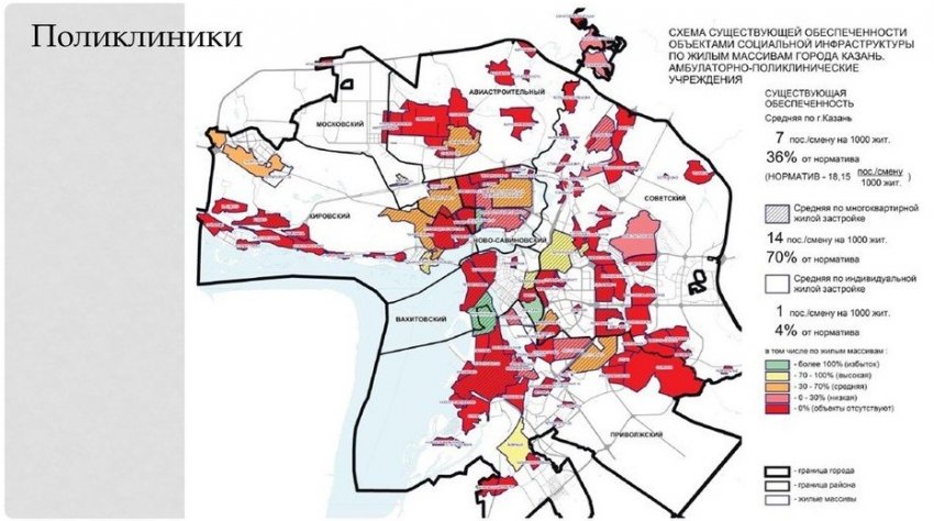 Заместитель начальника управления здравоохранения Казани Гульнара Гайфуллина подчеркнула, что при формировании предложения для Генплана чиновники ставили две задачи. Во-первых, «приближение первичной медико-санитарной помощи к населению по принципу шаговой доступности»; во-вторых, «обеспечение высококвалифицированной специализированной помощью путем создания крупных клинико-диагностических медицинских центров».