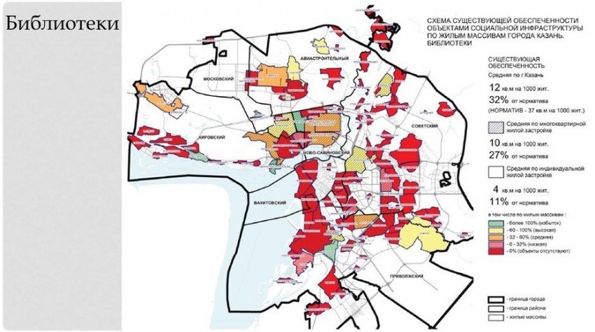 Вся территория Казани на ней разделена на пронумерованные функциональные зоны. Как отметила Латыпова, «логика расчетов исходит из того, что на каждую зону заложено максимальное количество метров жилья, и соответственно им рассчитывают количество объектов социального значения». Это не означает, что все эти объекты будут построены именно в этой зоне или что они не могут быть смещены на другие территории. Это значит, что здесь есть жилье и для него должны быть по нормативам социальные объекты.