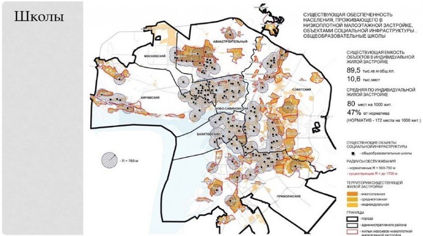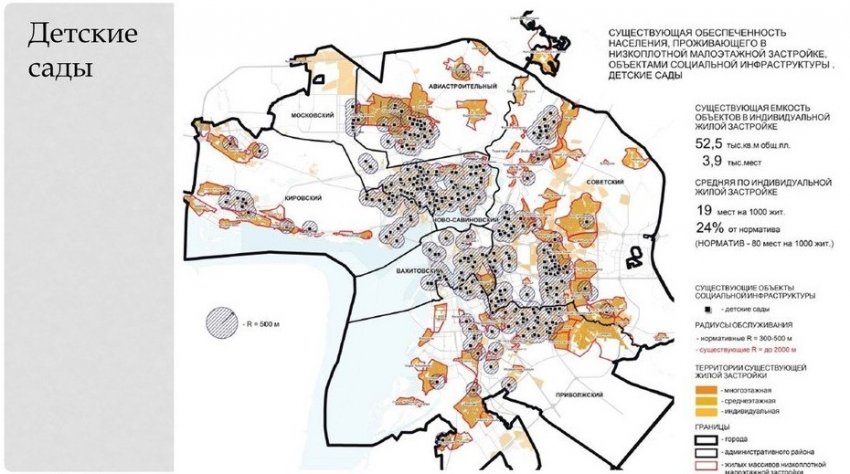 В завершении представления Генплана Анастасия Латыпова отметила, что особое внимание при его разработке уделили обеспечению объектами социальной инфраструктуры поселков на периферии города, которые вошли в границы Казани в 2007 году. Например, до момента разработки проекта Генплана на территории жилого массива Самосырово отсутствовали какие-либо объекты социальной инфраструктуры. После проведенных расчетов в проект заложили полноценную социальную инфраструктуру для этой территории: около 2 тыс. мест в школе, более 800 мест в детских садах, почти 1,5 тыс. мест в учреждениях дополнительного образования.