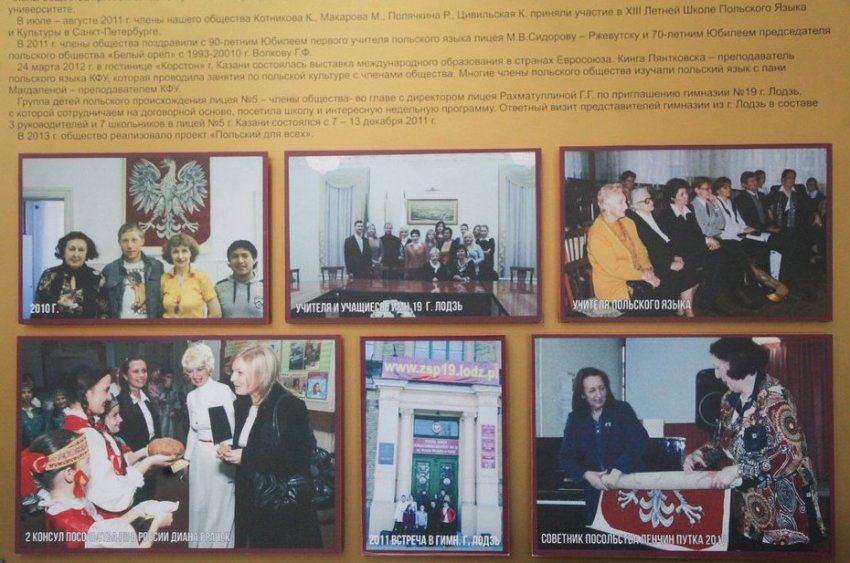 В 1992 году на базе казанского лицея №5 было создано общество поляков «Белый Орел», председателем которого стала Гельнар Волкова (по данным сервиса «СПАРК-Интерфакс», прекратило деятельность в 2019 году). Члены этой организации развивали и поддерживали отношения с представителями полонийских организаций Российской Федерации. За время существования этой организации при содействии международной организации поляков «Вспульнота Польска» и посольства Республики Польша в Москве более 20 учителей и 80 школьников казанского «польского» лицея посетили школы города Лодзи и не только прошли хорошую языковую практику, но и изучали историю Польши, узнали польский фольклор — песни, танцы, забавы.
