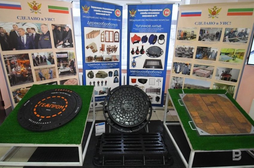 Перед началом коллегии ведомства в холле учебного центра регионального УФСИН прошла выставка товаров от колонистов: школьная мебель, спецодежда, комплекты для охоты и рыбалки, одежда для работников скорой помощи, а еще канализационные люки с запорной арматурой, скамейки и урны из металла и дерева по республиканской программе «Наш двор», сувениры и прочее.