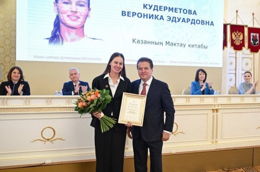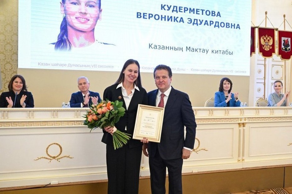 VII сессия Казгордумы началась с награждений. В родной город приехала российская теннисистка Вероника Кудерметова — заслуженный мастер спорта, победительница турнира Большого шлема в парном разряде. Ранее ее внесли в Книгу почета Казани, а теперь мэр города Ильсур Метшин вручил спортсменке почетную награду.