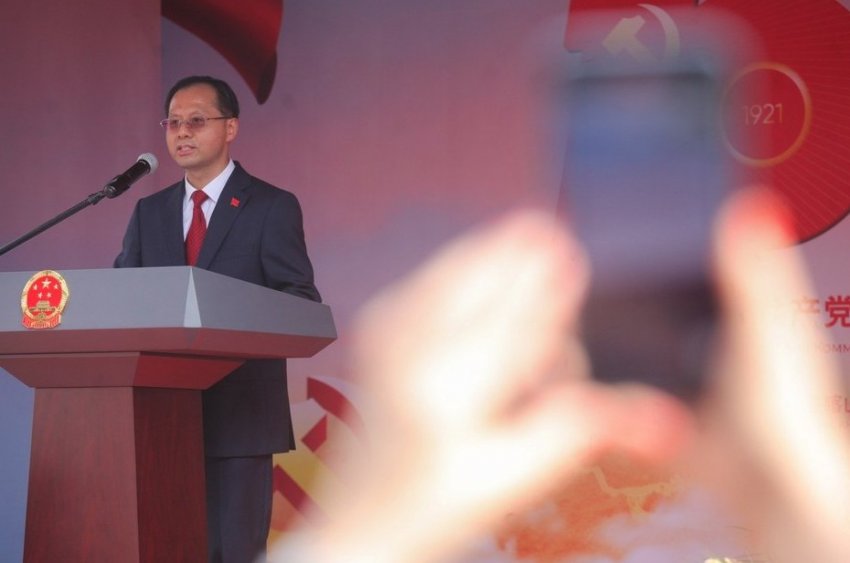 Сначала генконсул коротко рассказал о Ленине, заметив, что «залпы октябрьской революции России принесли в Китай марксизм и ленинизм». А Китай был тогда «полуколониальным и полуфеодальным обществом», нищим государством. Потом была битва против капитализма и феодализма. Но далее китайские революционеры увидели надежду в событиях в России — и с помощью товарищей из-за рубежа создали партию, а потом установили социалистическую систему.