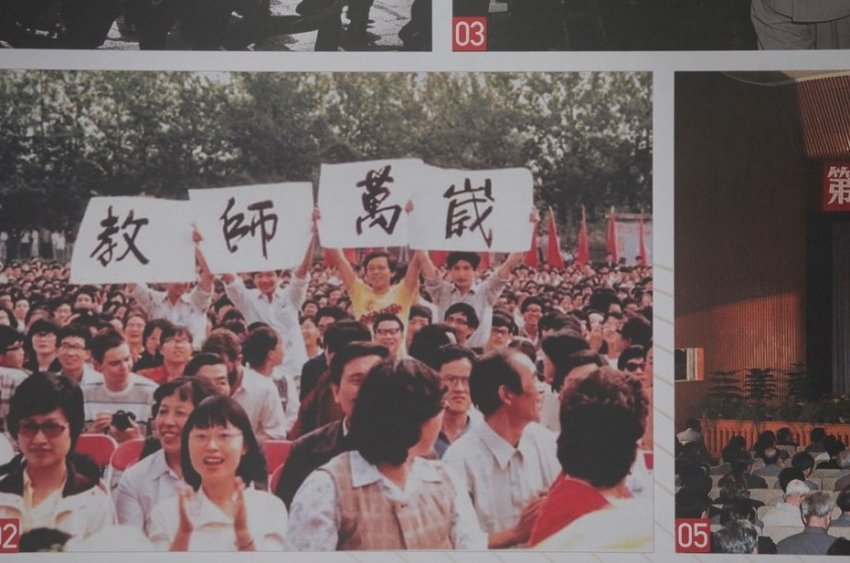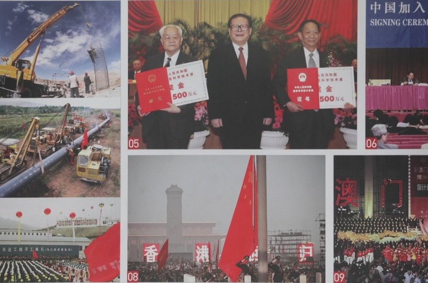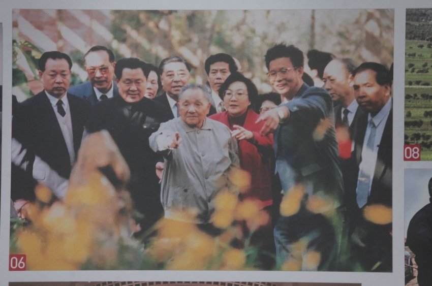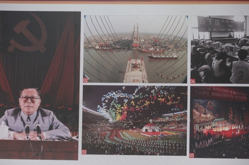 По периметру площадки расположилось около 30 плакатов. На каждом — около 10 фотографий, подробно рассказывающих о том, как появилась Чжунго Гунчаньдан при содействии Коминтерна в 1921 году с генсеком Чэнь Дусю, о первом нелегальном съезде и так далее…